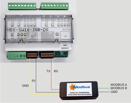 Mit diesem kleinen Erweiterungsmodul kann ein beliebiges Haus-Bus Modul mit LAN Schnittstelle (z.b. 16-fach Relaismodul, 12-fach Relaismodul) um einen voll funktionsfähigen Modbus erweitert werden. Während andere Hersteller dafür eine extra Extension verkaufen, können Sie bei Haus-Bus diese wertvolle Funktion einfach günstig hinzufügen. Es gibt sehr viele Geräte, die per Modbus RTU anbieten Informationen auszulesen oder zu schreiben und das Gerät zu steuern. (Z.b. diverse Stromzähler, PV Wechselrichter, Heizungs- oder Lüftungssteuerungen). Das Modbus Erweiterungsmodul wird einfach an zwei der bestehenden Digitaleingänge des Haus-Bus Moduls angeschlossen und bietet ausgangsseitig die nötigen RS485 Klemmen für Modbus A und B. Anschließend kann der Modbus per Modbus TCP abgefragt werden (z.b. in Homeassistant oder Loxone). Selbst an Systeme, die keine native Unterstützung von Modbus TCP anbieten, können Werte gesendet werden, indem die gewünschten Register mit dem Haus-Bus Konfigurationstool eingestellt werden. Bitte beachten Sie, dass die vorhandenen Register, sowie die modulspezifischen Datentypen aus dem Datenblatt des jeweiligen Gerätes entnommen werden müssen. Die grundlegende Konfiguration wird wie immer im Video (s.u.) erklärt und wir versuchen für die unterstützen Systeme nach und nach Templates für gängige Systeme abzulegen.