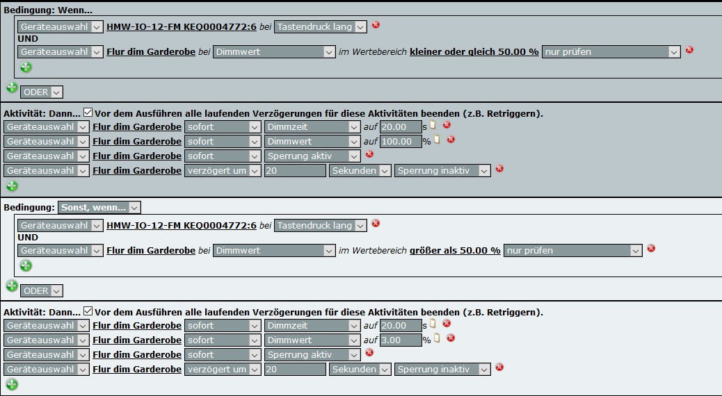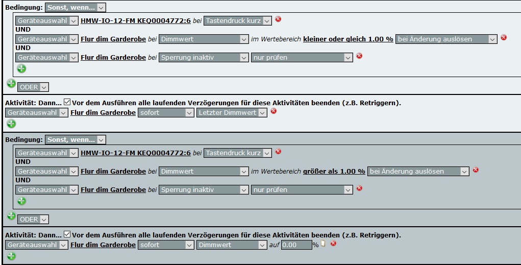 Da das Homematic System keine Direktverknüpfungen zwischen unterschiedlichen Bussen unterstützt (Funk, Wired Classic, IP Wired), ist man teils gezwungen Dimmer per CCU Programm anzusteuern.